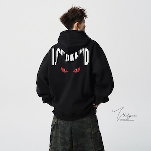 【V37シリーズ】★パーカー★ 4color トップス 男女兼用 メンズ 大きいサイズ 黒 灰 悪魔 アルファベット カジュアル