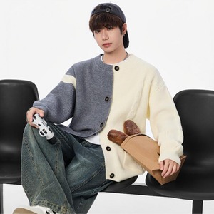【FANMADUシリーズ】★カーディガン★ 3color セーター アウター 男女兼用 メンズ 大きいサイズ 配色 青 黒 赤