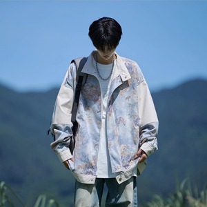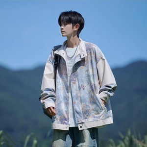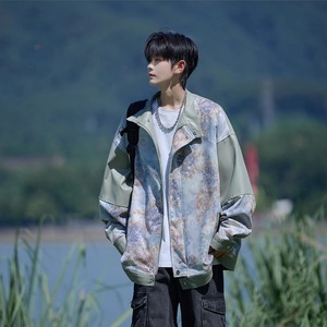 【VUUGシリーズ】★チャイナ風アウター★3colorジャケット 蝶々 油絵風 オリジナル 花柄 PU カジュアル ベージュ 緑 ブラック かっこいい