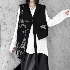 【SHANBENシリーズ】★チャイナ風ベスト★刺繍 ブラック 黒い 気質アップ 個性的 レディース 不規則 合わせやすい デザイン性有り