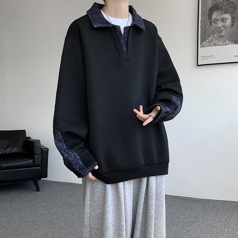 【CEXUシリーズ】★POLOシャツ★ 2color トップス 男女兼用 メンズ 大きいサイズ 切り替え Vネック