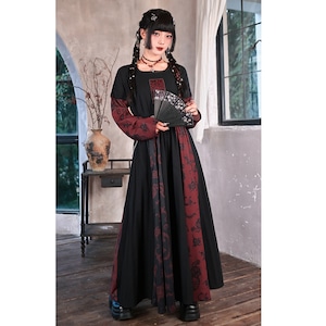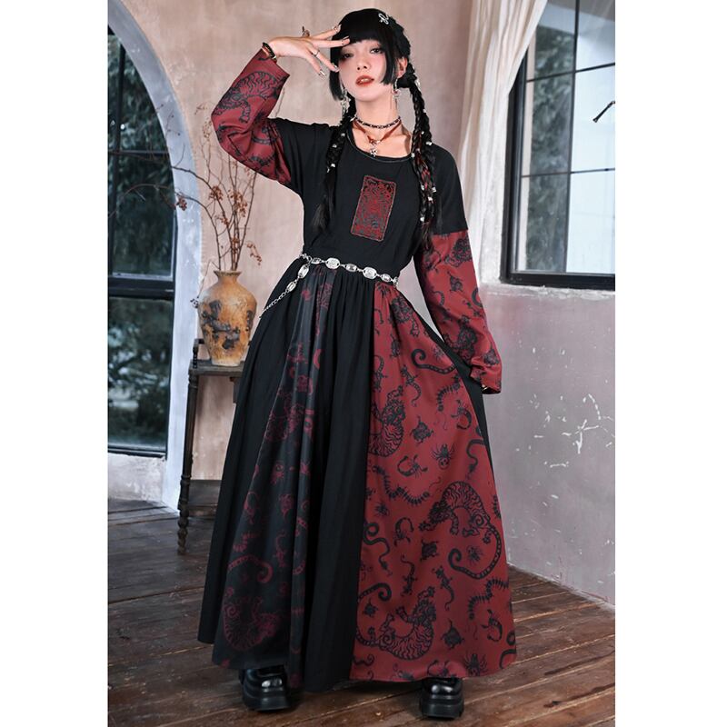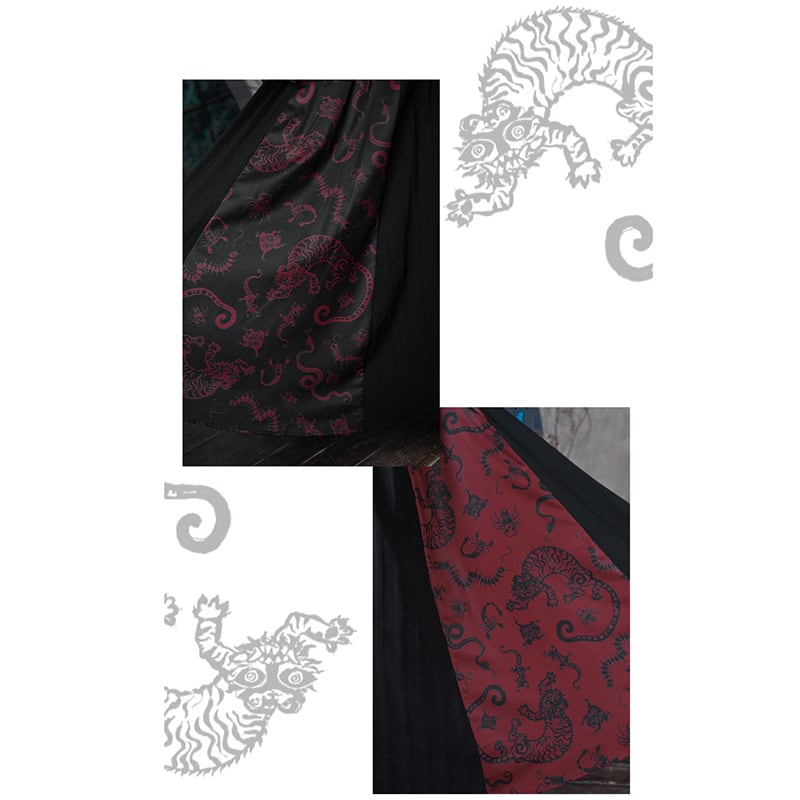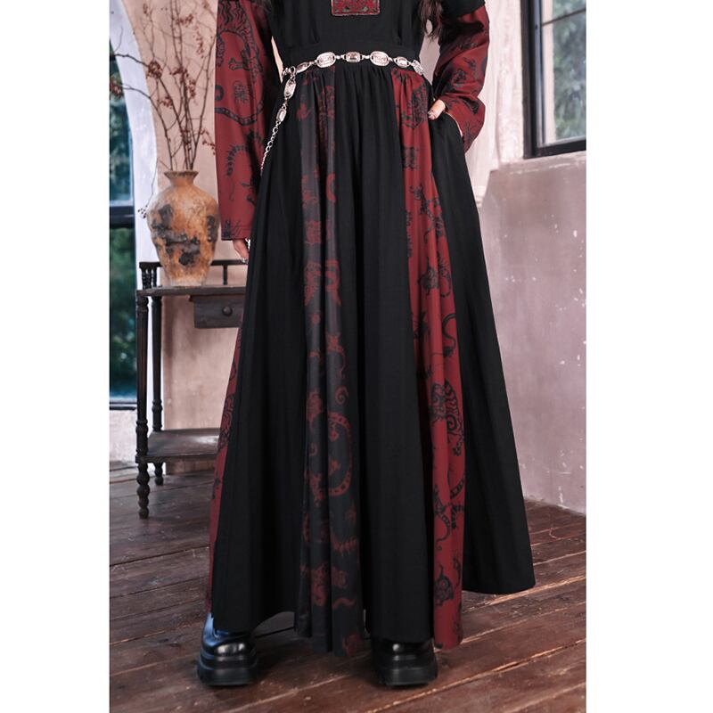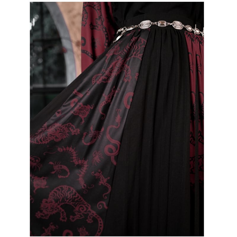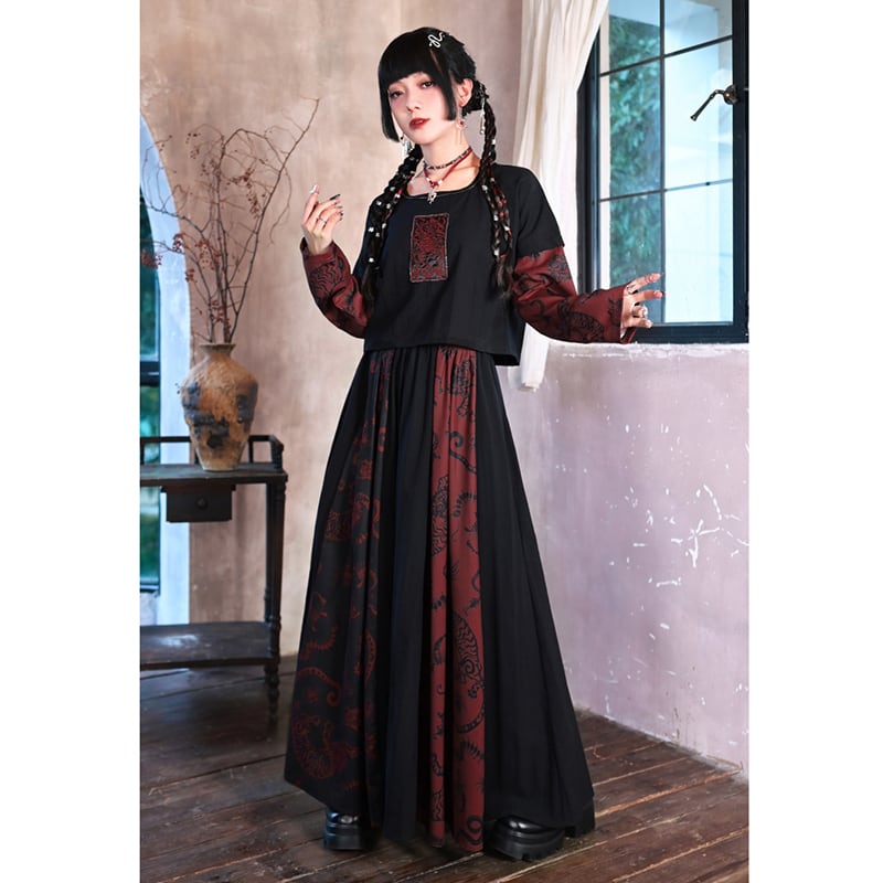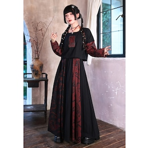 【古怪舍---五毒シリーズ】★チャイナ風スカート★ ボトムス 切り替え 配色 ブラック 黒 レッド 赤