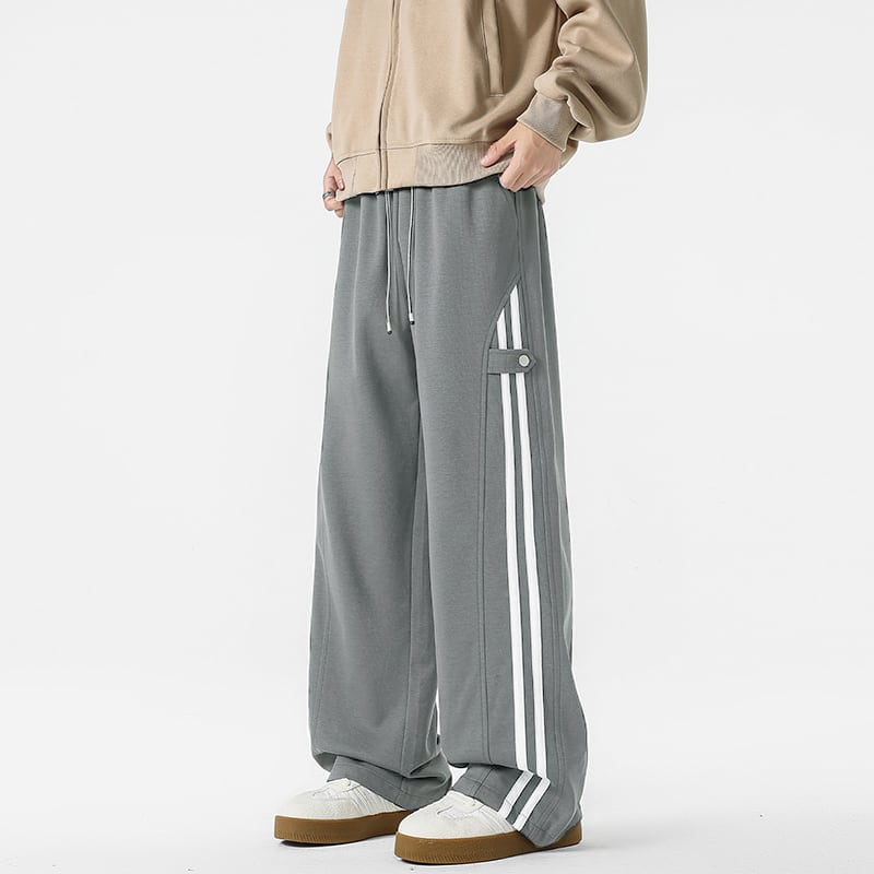 【DILANGNIUシリーズ】★カジュアルパンツ★ 3color ボトムス ズボン 男女兼用 メンズ 縦縞 縞模様 黒 灰