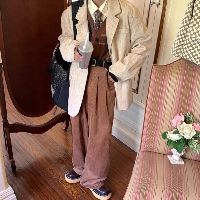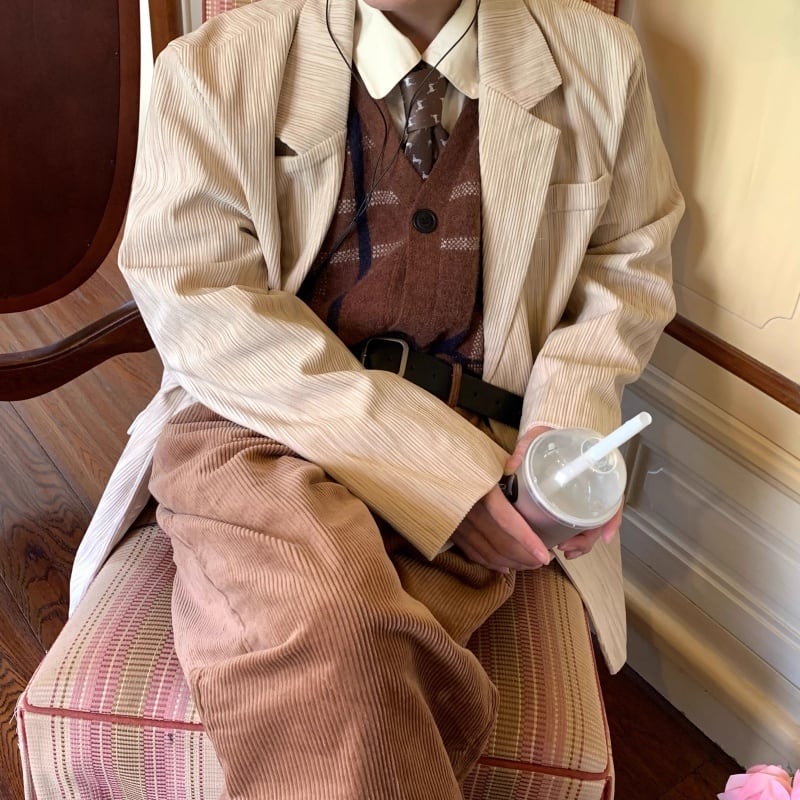 【C2 Studiosシリーズ】★アウター★ ブレザー コーデュロイ レディース レトロ 男女兼用 メンズ アプリコット 合わせやすい