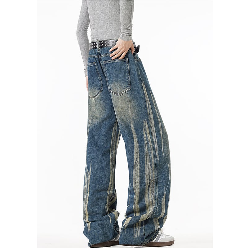 【悟シリーズ】★デニムパンツ★ 3color ズボン ボトムス 男女兼用 メンズ レトロ ブラック ブルー 配色