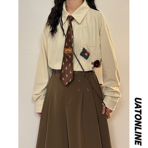【UATONLINEシリーズ】★シャツ★ 2color トップス ネクタイ付きシャツ 長袖 男女兼用 メンズ レトロ