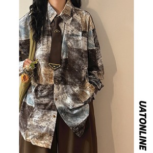 【UATONLINEシリーズ】★シャツ★ ネクタイ付きシャツ トップス 長袖 油絵風 男女兼用 メンズ 配色