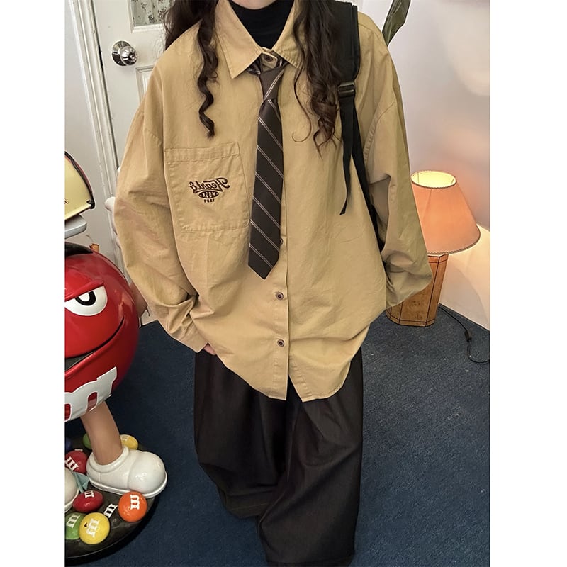 【C2 Studiosシリーズ】★シャツ★ 4color ネクタイ付きシャツ トップス 長袖 男女兼用 メンズ カジュアル