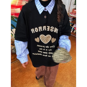 【C2 Studiosシリーズ】★POLOシャツ★ トップス 長袖 男女兼用 メンズ カジュアル アルファベット 豹柄 黒