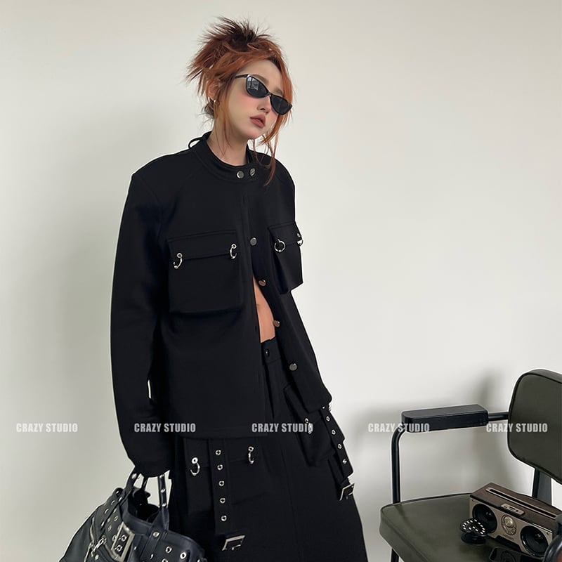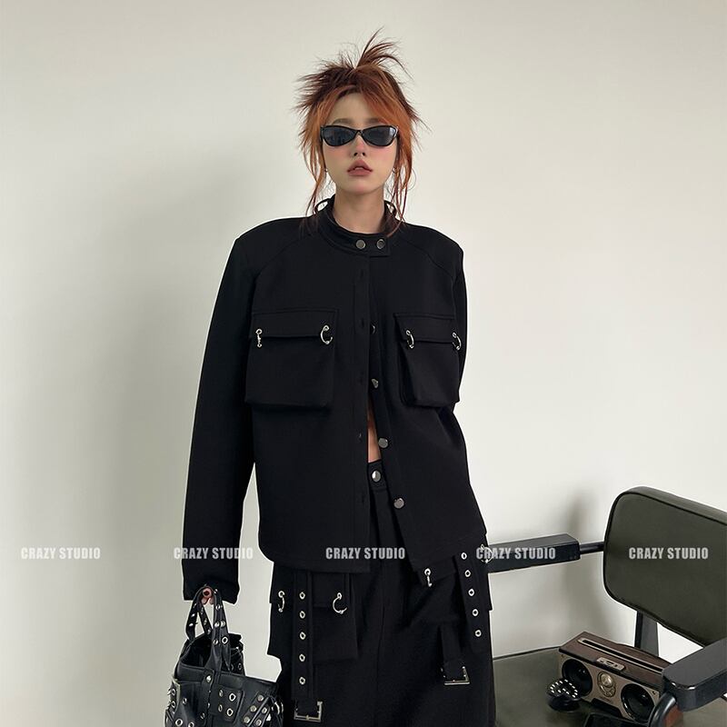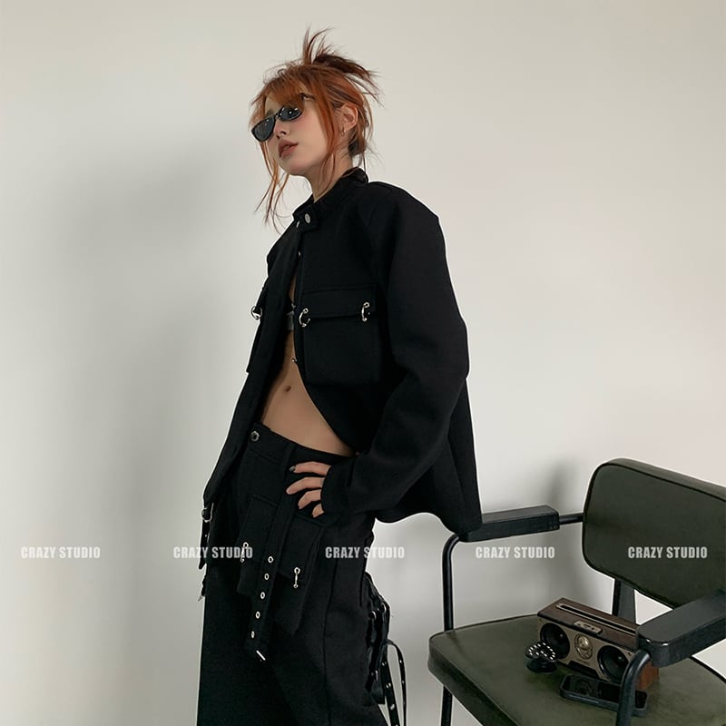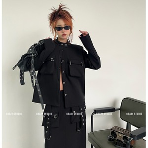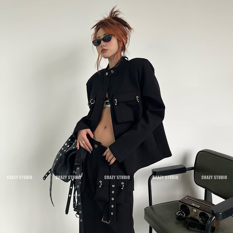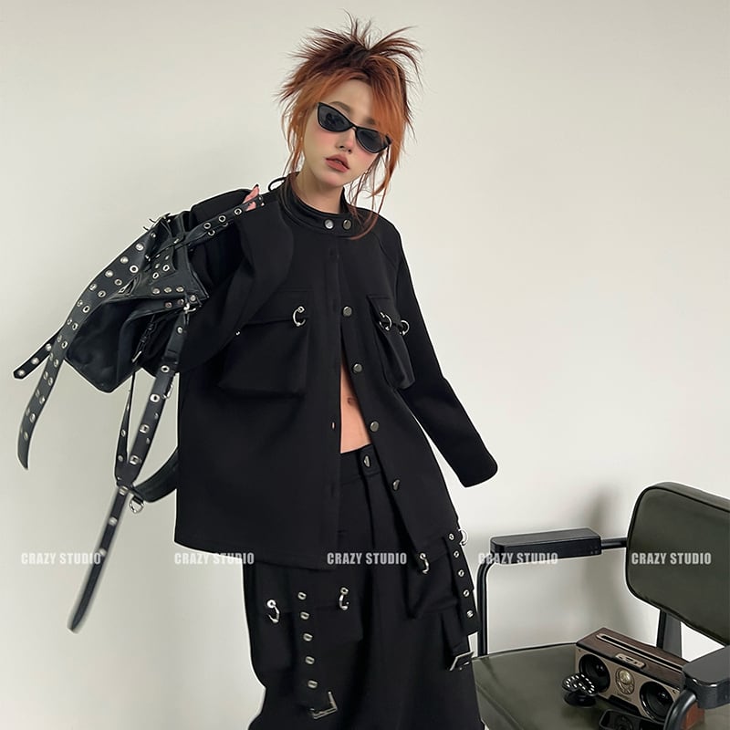 【CRAZY STUDIOシリーズ】★ブレザー★ アウター レディース 個性的 カジュアル ブラック 黒い レトロ
