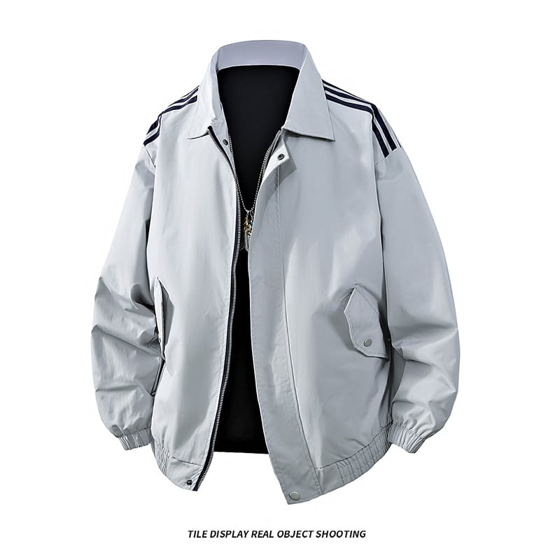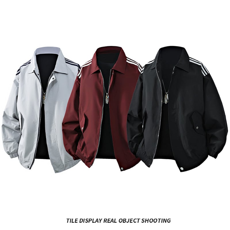 【WSシリーズ】★ジャケット★ 3color アウター 男女兼用 メンズ 大きいサイズ 縦縞 縞模様 スポーツ風 赤 黒 灰