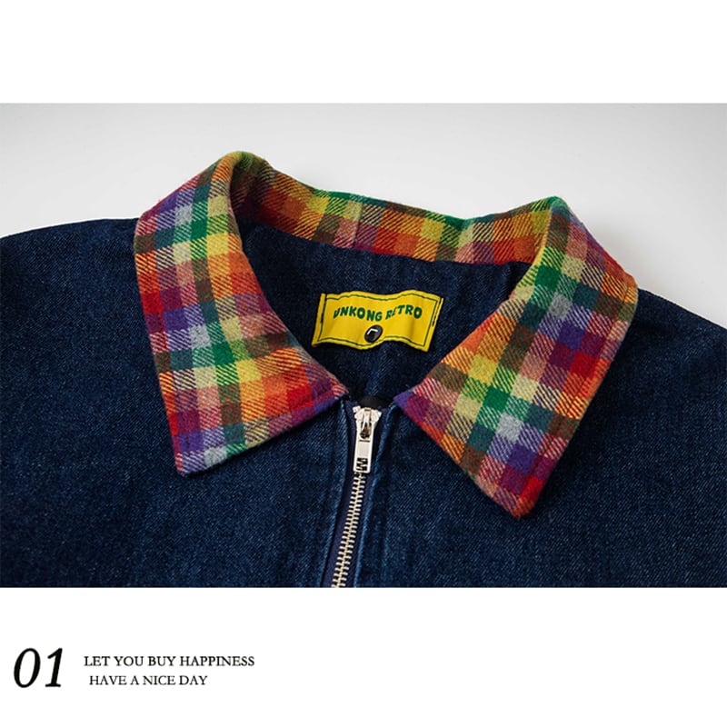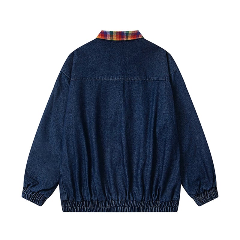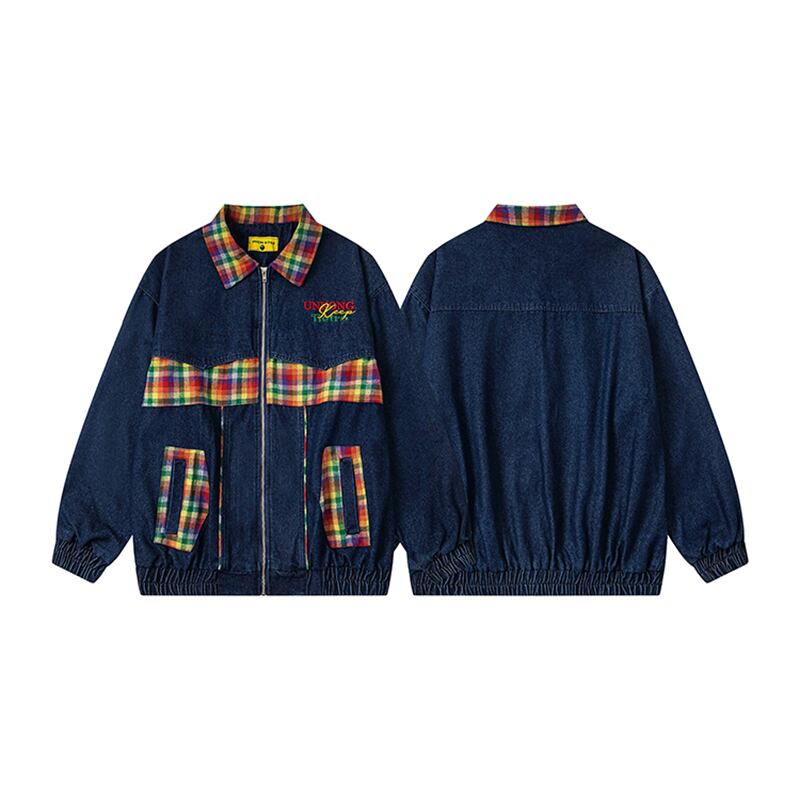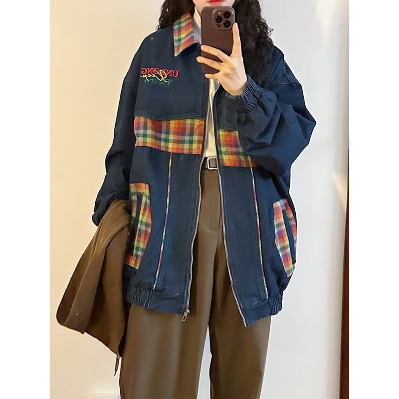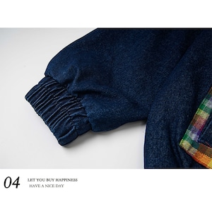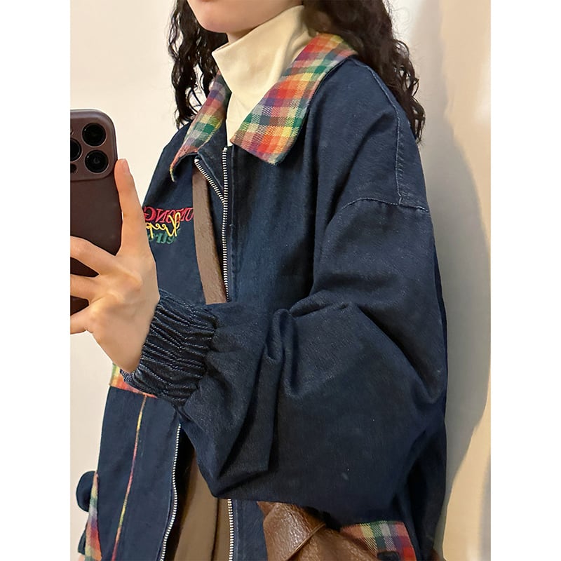 【UATONLINEシリーズ】★アウター★ チェック柄 ジャケット レディース デニムジャケット ブルー 青い カジュアル 切り替え