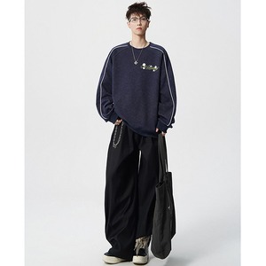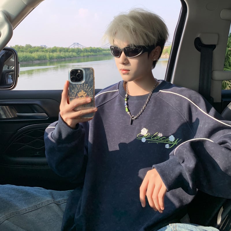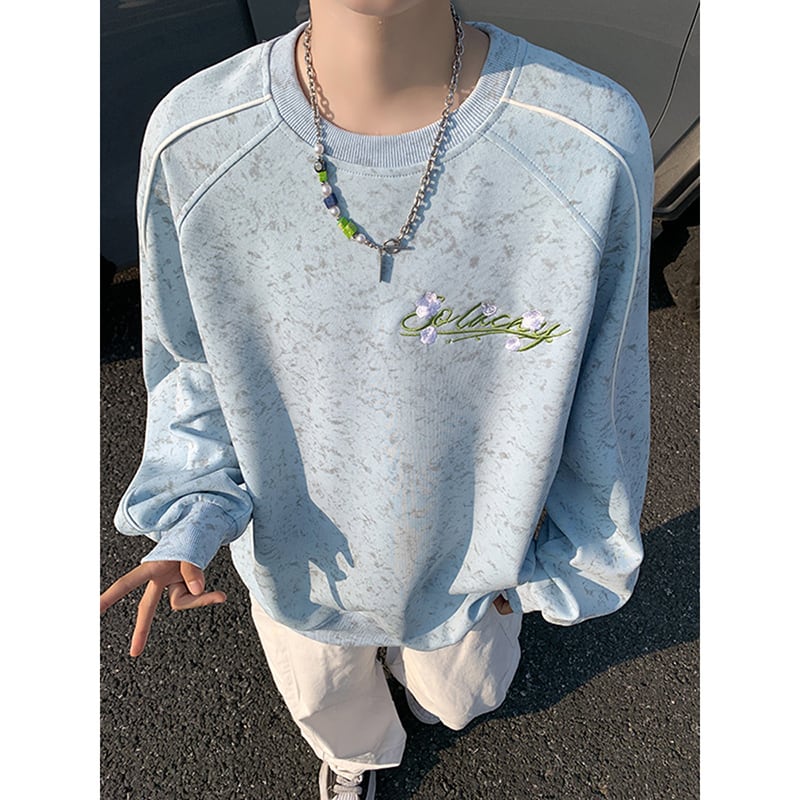 【V37シリーズ】★チャイナ風トップス★ 刺繍 4color スウェット 男女兼用 メンズ アルファベット 青 黒 青 白