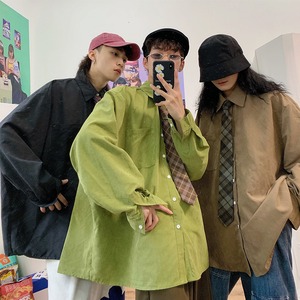 【C2 Studiosシリーズ】★シャツ★ 6color 長袖シャツ トップス 男女兼用 メンズ 定番 無地 ゆったり 赤 青 黒 白 緑