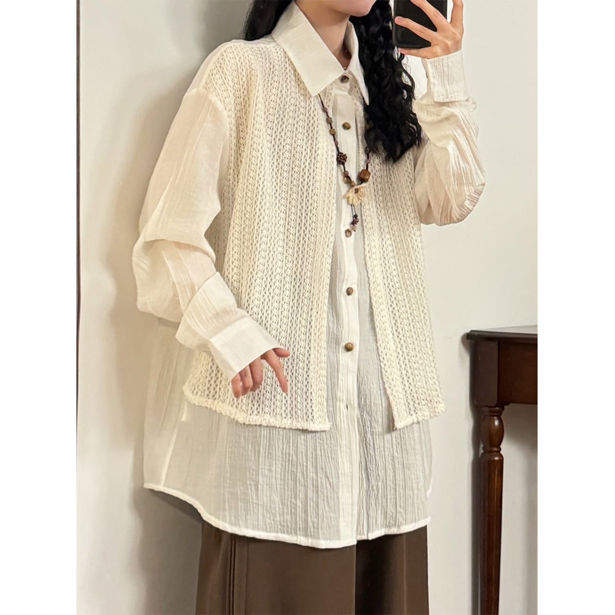 【UATONLINEシリーズ】★チャイナ風トップス★ 2color トップス 男女兼用 メンズ レトロ 長袖シャツ フェイクレイヤード