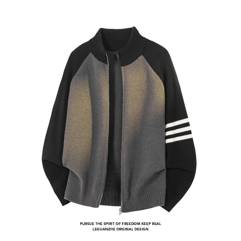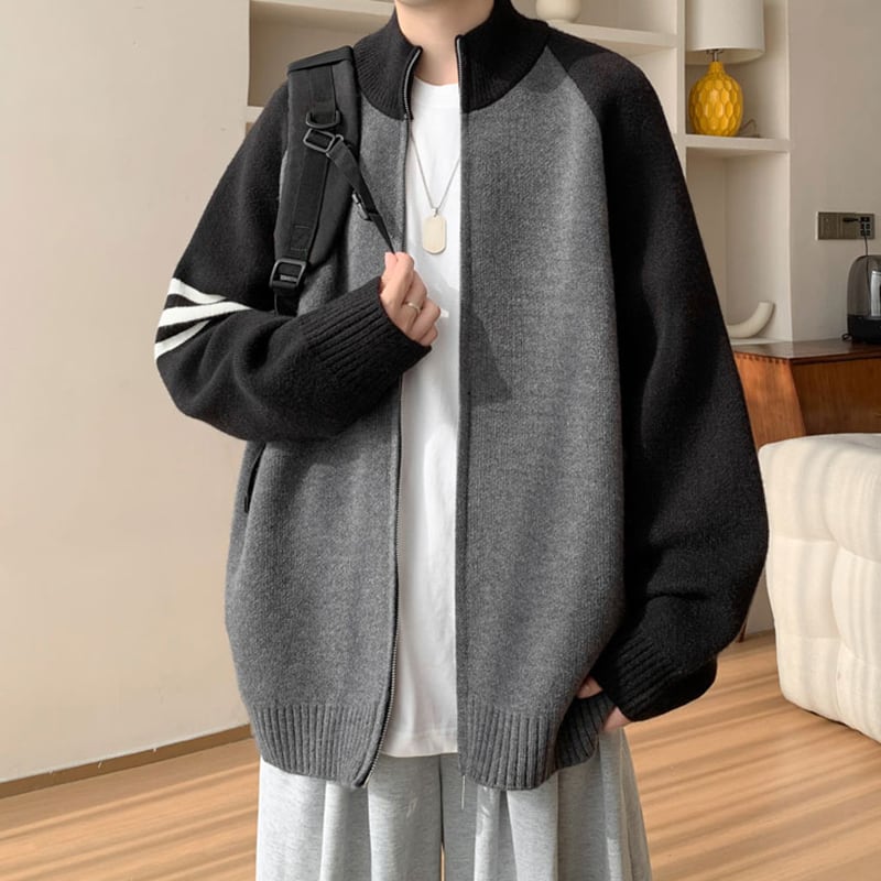 【BIGEMANシリーズ】★セーター★ 2color ニットトップス カーディガン アウター 男女兼用 メンズ 横縞 縞模様 配色