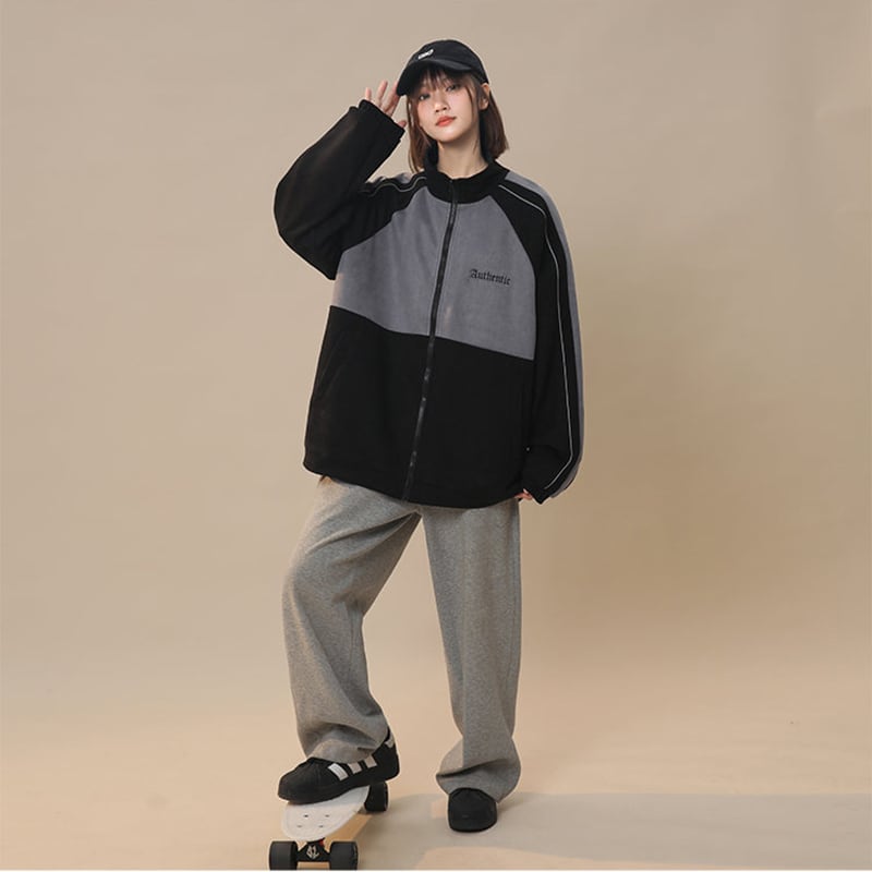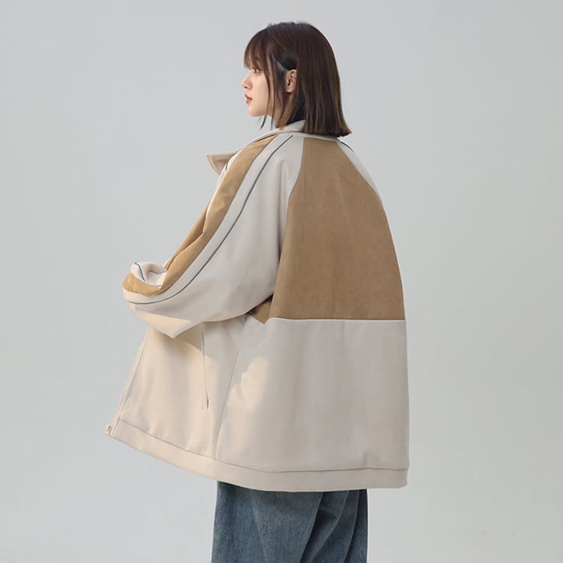 【藤伊曼シリーズ】★ジャケット★ 4color アウター 男女兼用 メンズ スエード 配色 スポーツ風 カジュアル