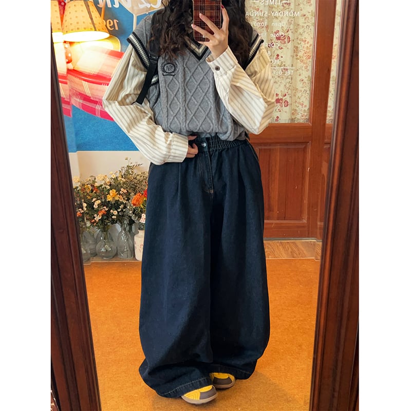 【C2シリーズ】★ズボン★ デニムパンツ ボトムス ガウチョパンツ 男女兼用 メンズ レトロ ブルー 青い