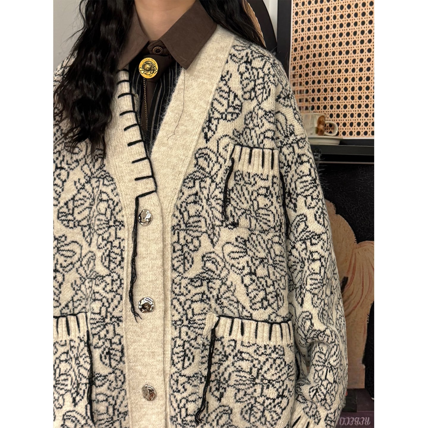 【UATONLINEシリーズ】★チャイナ風アウター★ 2color カーディガン ニットトップス セーター 男女兼用 メンズ 水墨柄