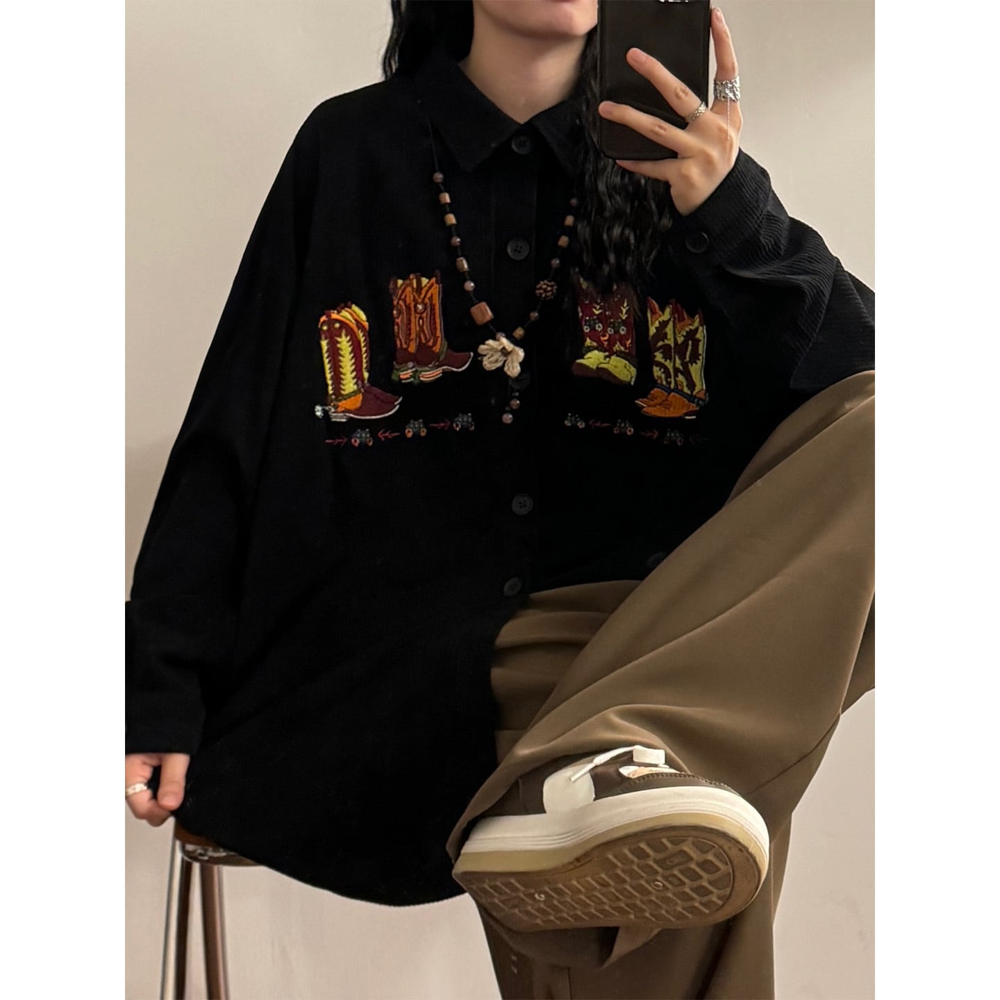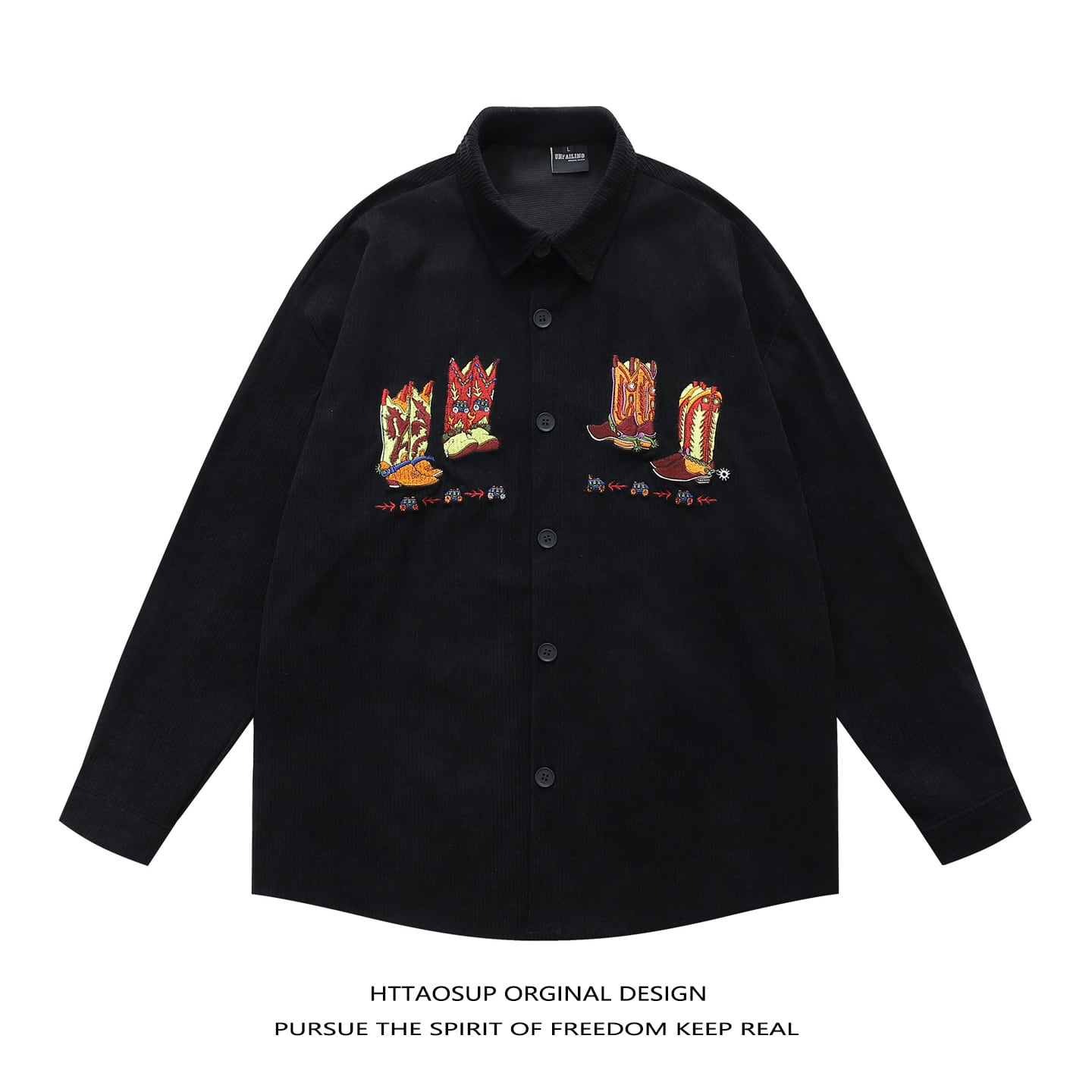 【UATONLINEシリーズ】★チャイナ風トップス★ 刺繍 3color シャツ 長袖シャツ 男女兼用 メンズ コーデュロイ