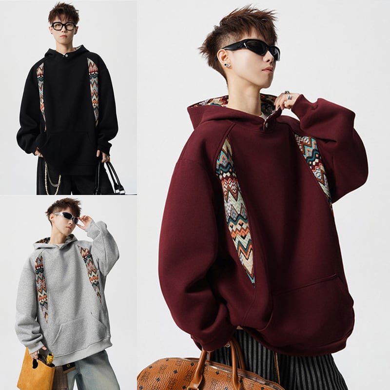 【CEXUシリーズ】★チャイナ風トップス★ 3color パーカー 男女兼用 メンズ 大きいサイズ 黒 灰 赤 エスニック風
