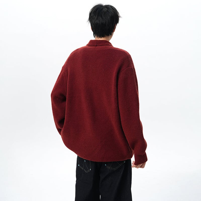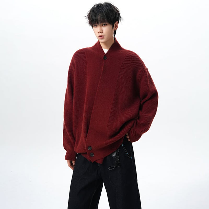 【CEXUシリーズ】★チャイナ風トップス★ 4color セーター カーディガン 男女兼用 メンズ 大きいサイズ 黒 灰 赤 Vネック
