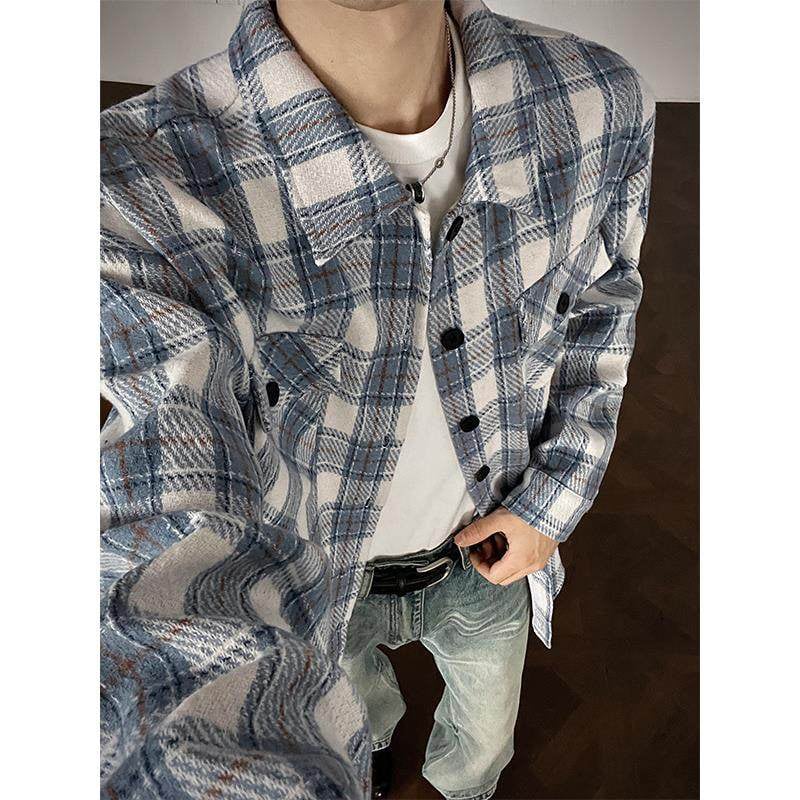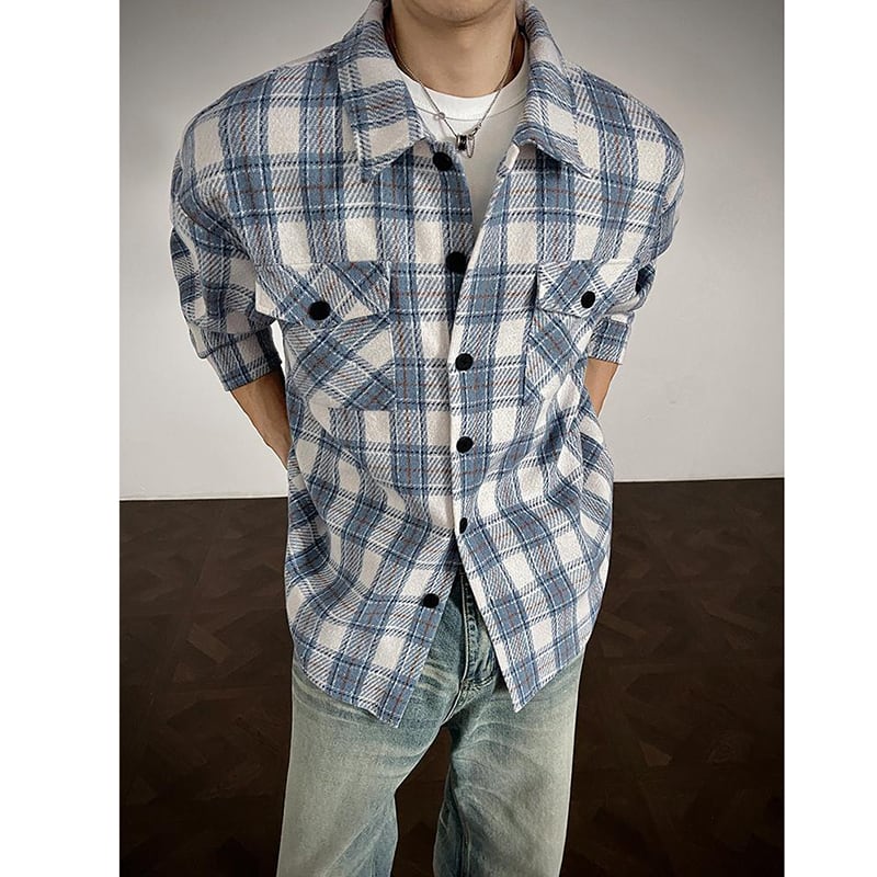 【CEXUシリーズ】★シャツ★ 3color トップス 男女兼用 メンズ 大きいサイズ 黒 青 チェック柄 合わせやすい