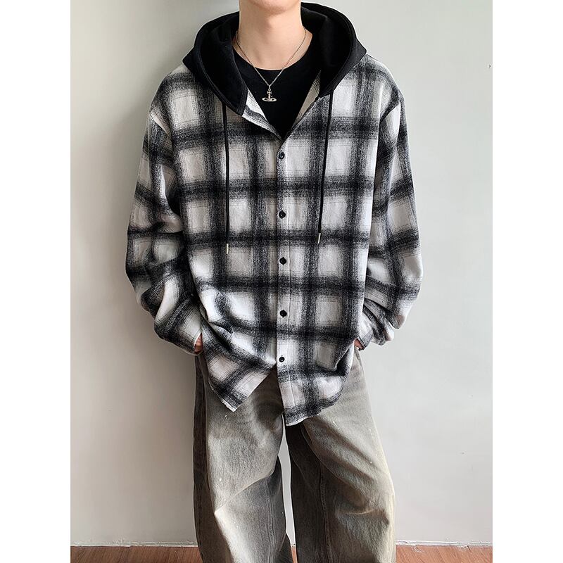 【CEXUシリーズ】★アウター★ 3color ジャケット 男女兼用 メンズ 大きいサイズ 黒 青 チェック柄 フード付き