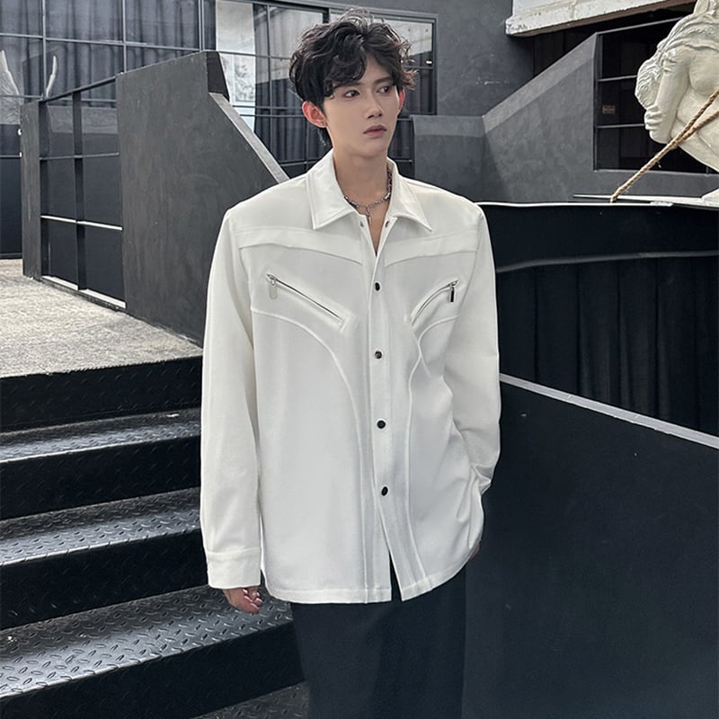 【入画シリーズ】★シャツ★ 2color トップス 長袖シャツ 男女兼用 メンズ ジッパー付き かっこいい