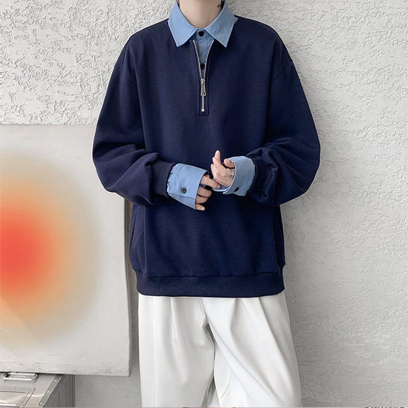 【CEXUシリーズ】★トップス★ 3color POLOシャツ 男女兼用 メンズ 大きいサイズ 白 灰 青 フェイクレイヤード