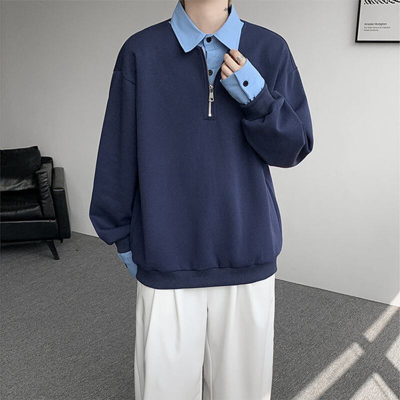 【CEXUシリーズ】★トップス★ 3color POLOシャツ 男女兼用 メンズ 大きいサイズ 白 灰 青 フェイクレイヤード