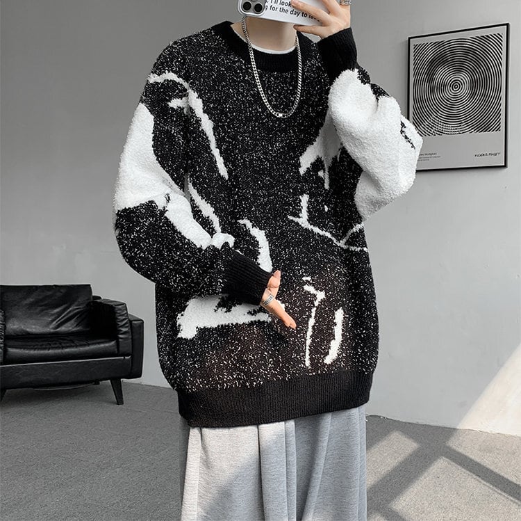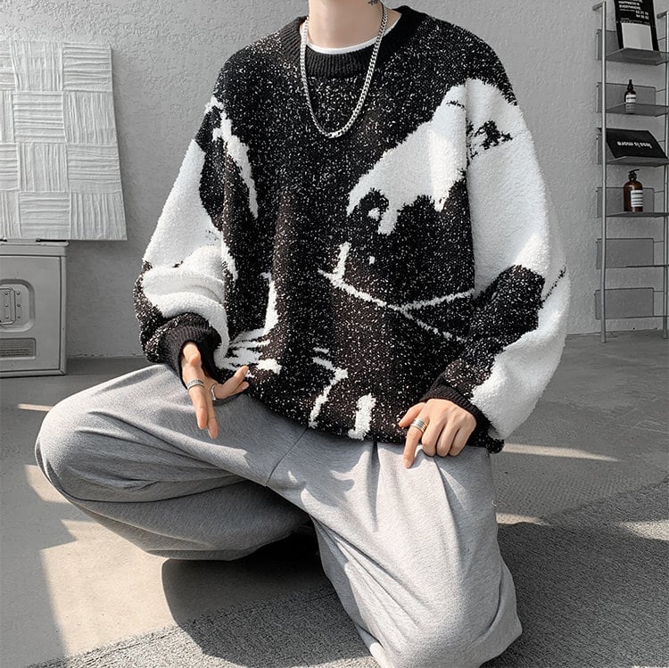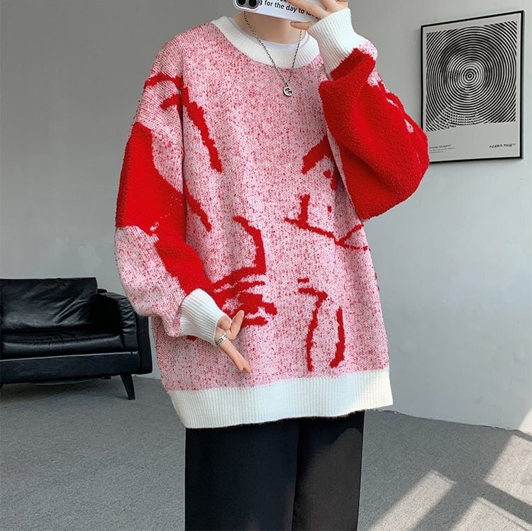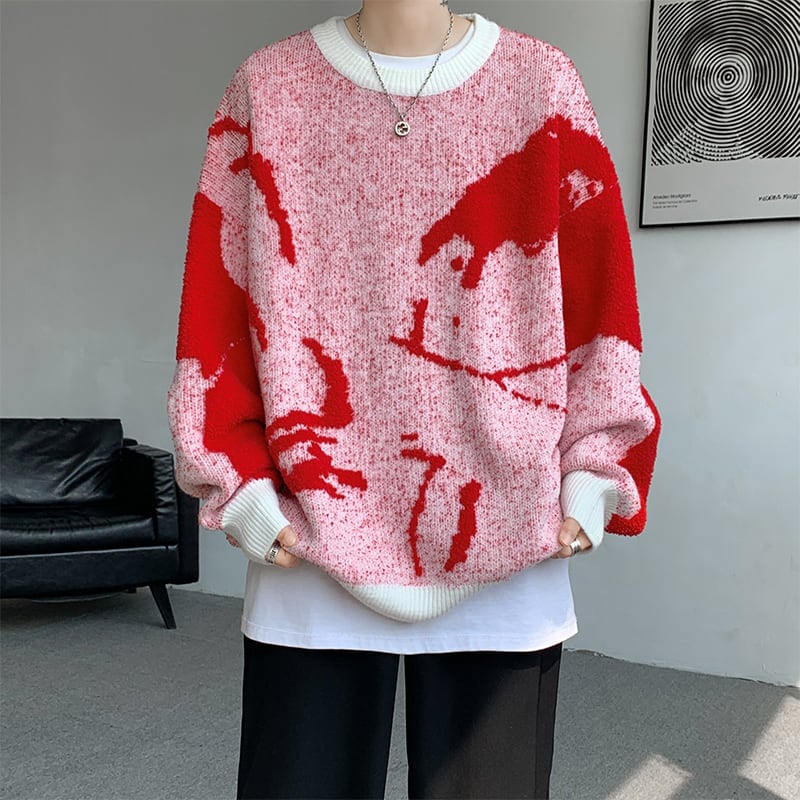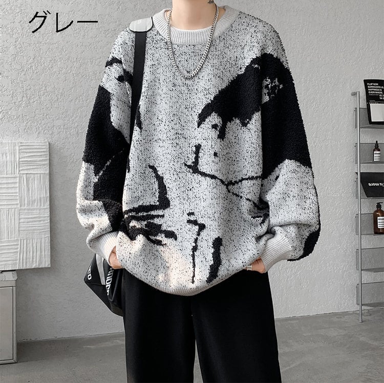 【CEXUシリーズ】★セーター★ 3color ニットトップス 男女兼用 メンズ 大きいサイズ 黒 灰 赤 配色 おしゃれ