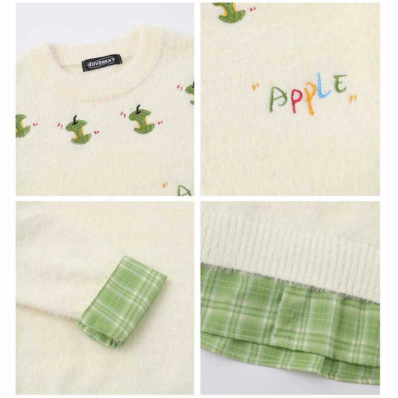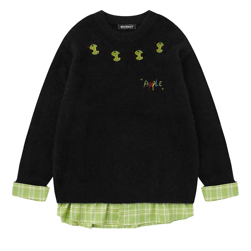 【BUNACCシリーズ】★セーター★ 2color ニットトップス リンゴ フェイクレイヤード 男女兼用 メンズ レディース 果物 りんご