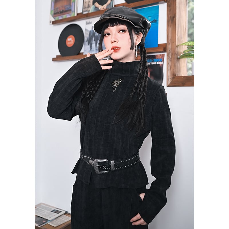 【古怪舍---五毒シリーズ】★チャイナ風トップス★ Tシャツ 長袖 ブラック 合わせやすい 暖か 着痩せ