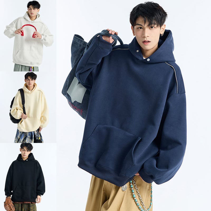 【XGYシリーズ】★パーカー★ 4color トップス 男女兼用 メンズ カジュアル 配色 黒 灰 青 合わせやすい