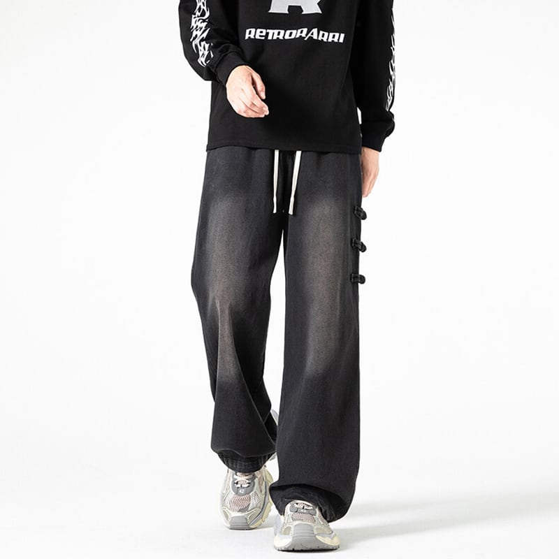 【HUICHUNシリーズ】★チャイナ風ズボン★ 3color ボトムス デニムパンツ 男女兼用 メンズ 大きいサイズ チャイナボタン