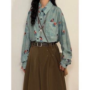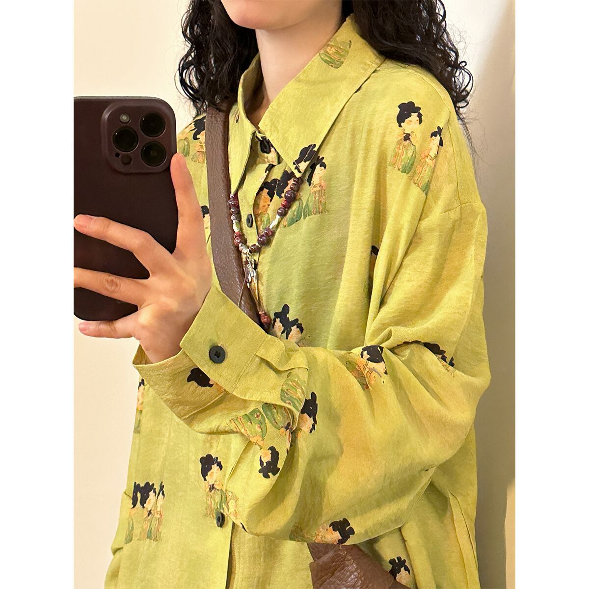 【UATONLINEシリーズ】★チャイナ風トップス★ 2color ネックレス付き シャツ 男女兼用 メンズ 長袖シャツ 美人プリント 緑 青
