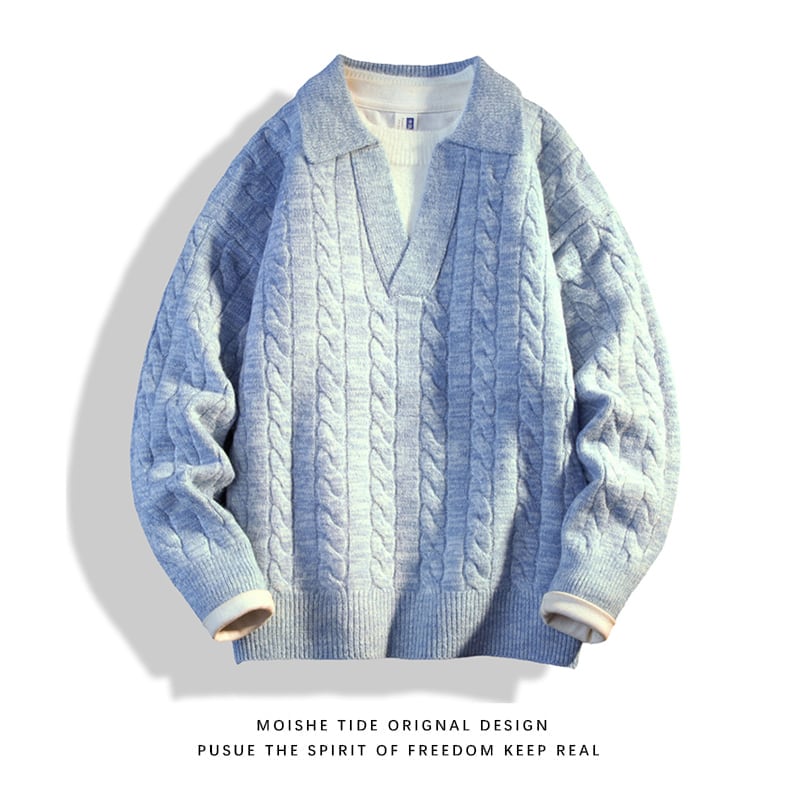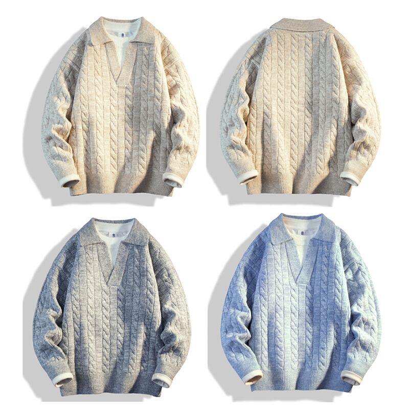 【WSシリーズ】★セーター★ 3color ニットトップス 男女兼用 メンズ フェイクレイヤード Vネック