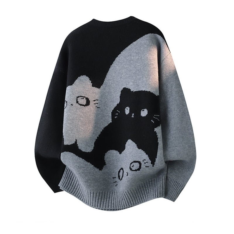 ☼猫柄セーター!【WSシリーズ】★セーター★ 3color ニットトップス 男女兼用 メンズ 配色 猫 ねこ ネコ 可愛い