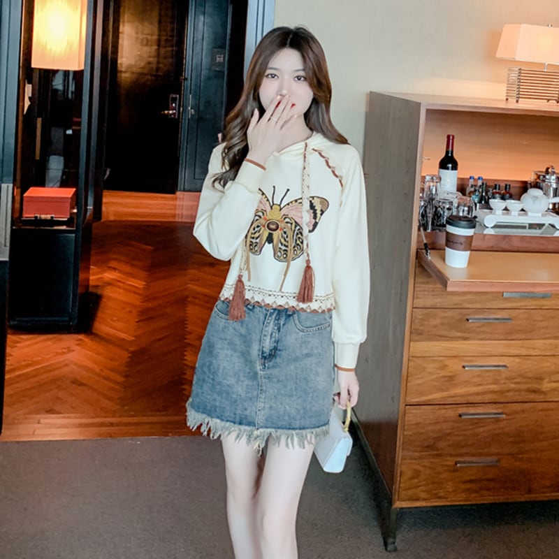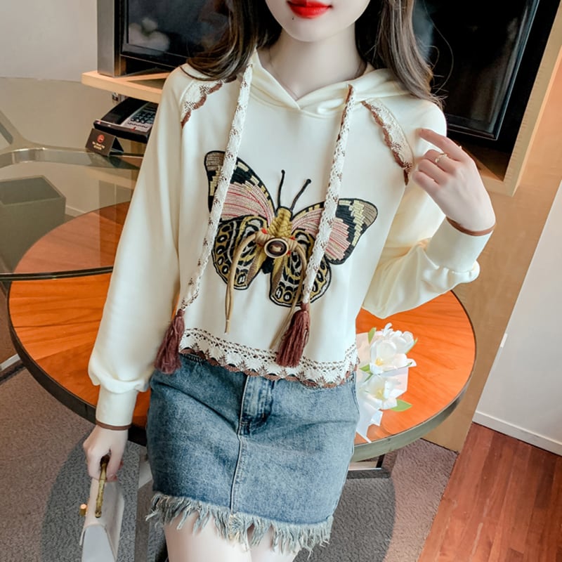 【FENGLINWANシリーズ】★チャイナ風トップス★ 刺繍 パーカー レディース ショート丈 蝶々 可愛い エスニック風