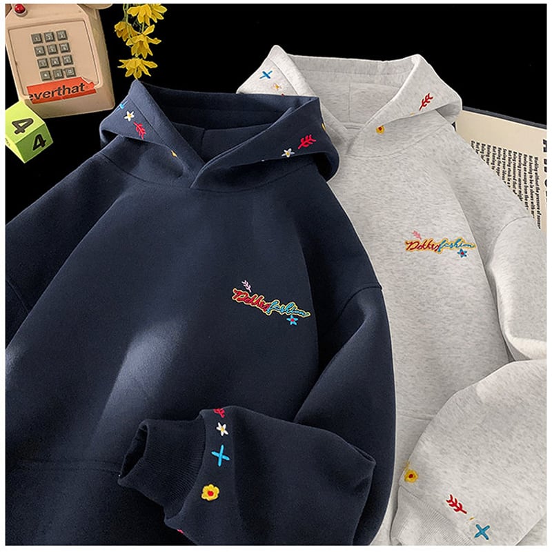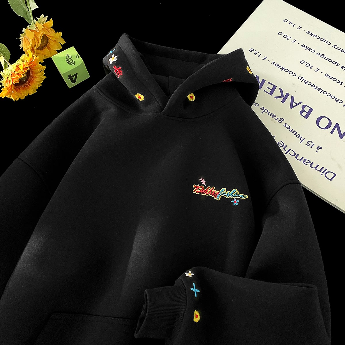 【ESSEFAUSTシリーズ】★パーカー★ 4color 刺繍 トップス 男女兼用 メンズ 花柄 黒 青 カジュアル