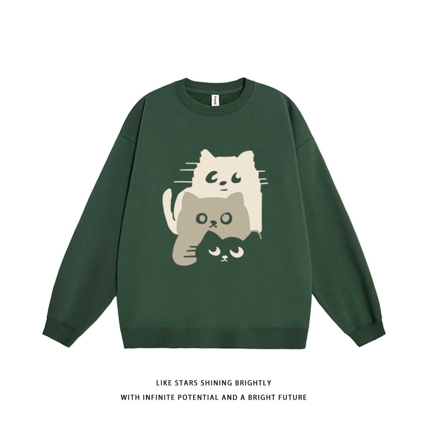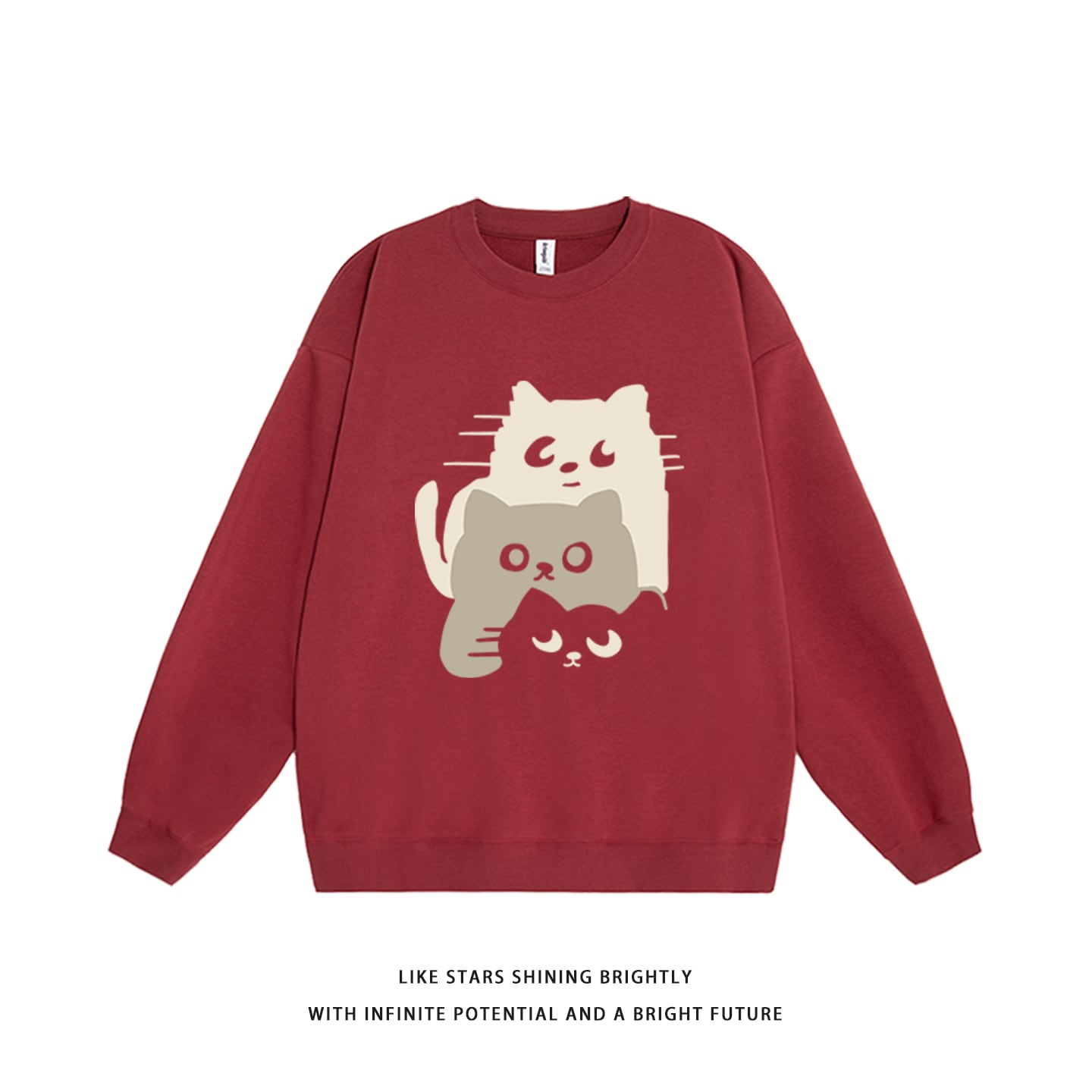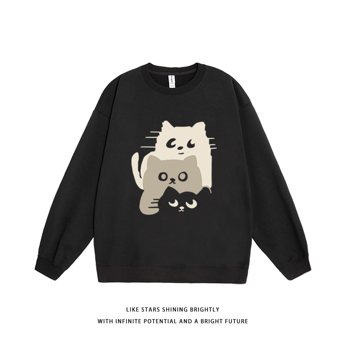 【XINGYANGシリーズ】★トップス★ 6color スウェット 男女兼用 メンズ 猫 ねこ ネコ 黒 赤 緑 青 赤 灰