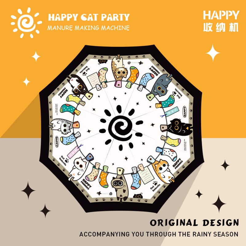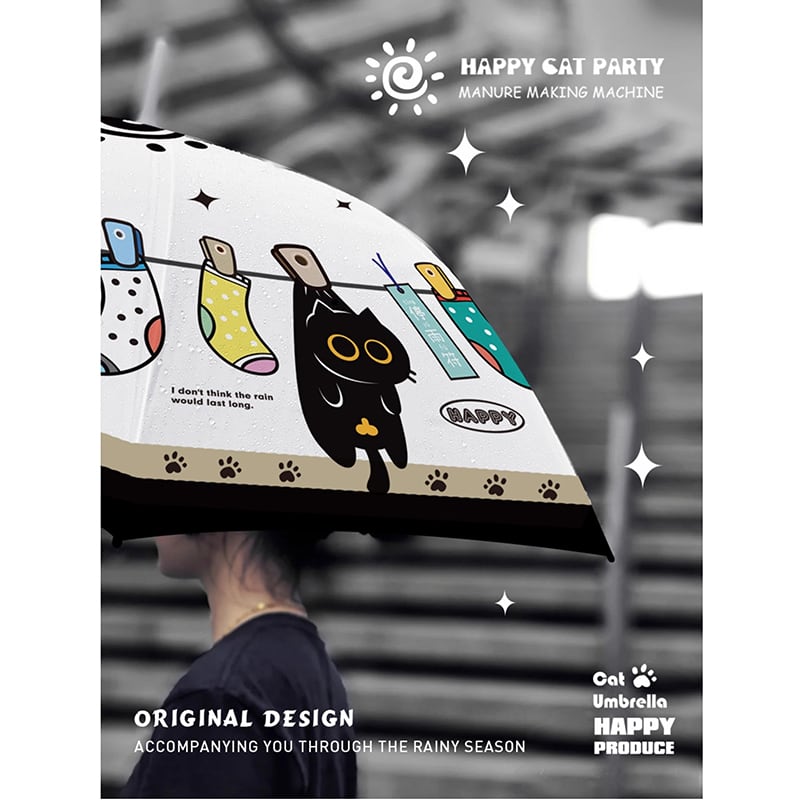 【HAPPYシリーズ】★傘★ かさ 猫 ねこ ネコ 猫柄 雨&晴 手動傘 カートゥーン 可愛い 配色 プレゼント