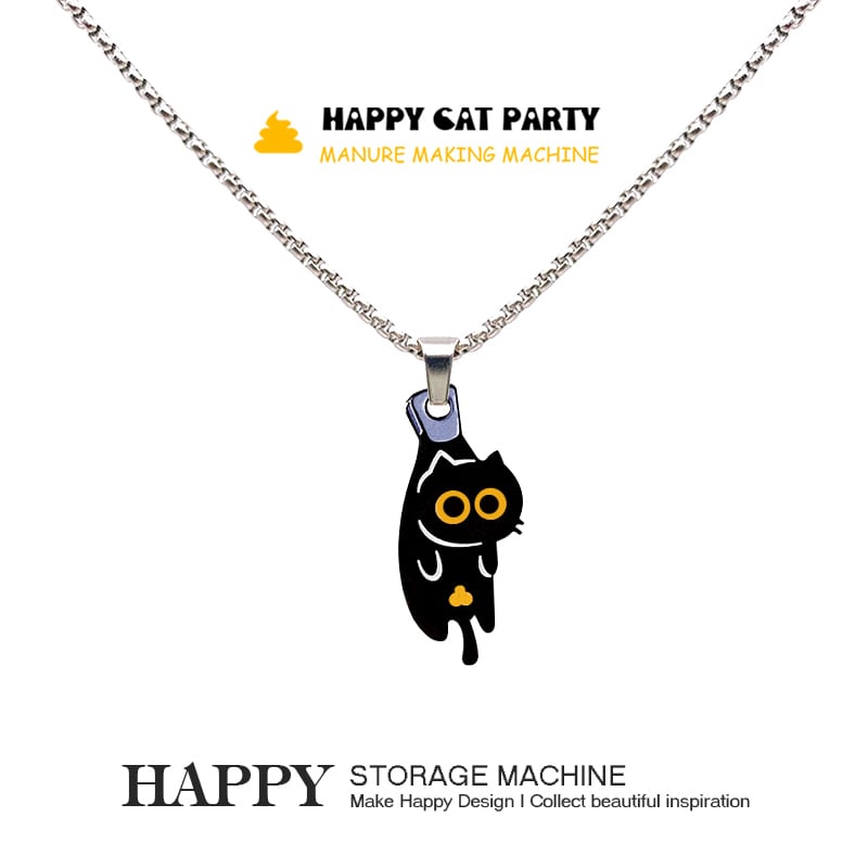 【HAPPYシリーズ】★ネックレス★ 2color 飾り物 アクセサリー 黒猫 猫 猫柄 ねこ カートゥーン レディース