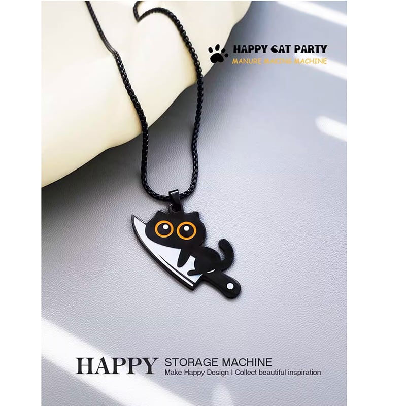 【HAPPYシリーズ】★ネックレス★ 飾り物 アクセサリー 黒猫 猫 猫柄 ねこ カートゥーン レディース