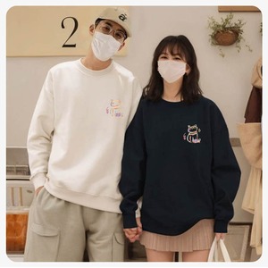 【MAIBU---猫シリーズ】★トップス★ 4color スウェット 男女兼用 メンズ カートゥーン 猫 猫柄 ねこ ネコ 彩り