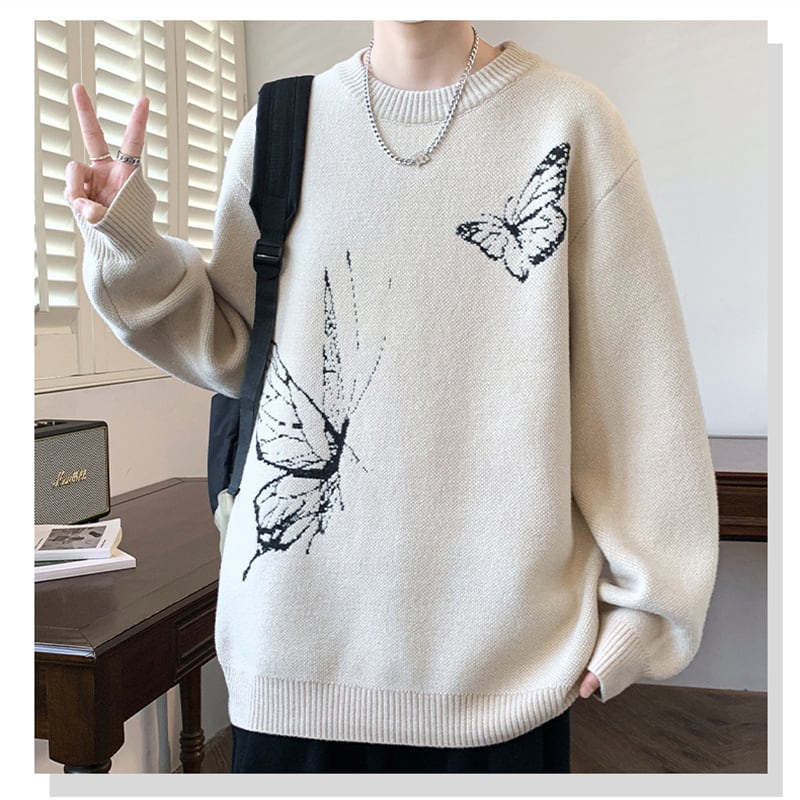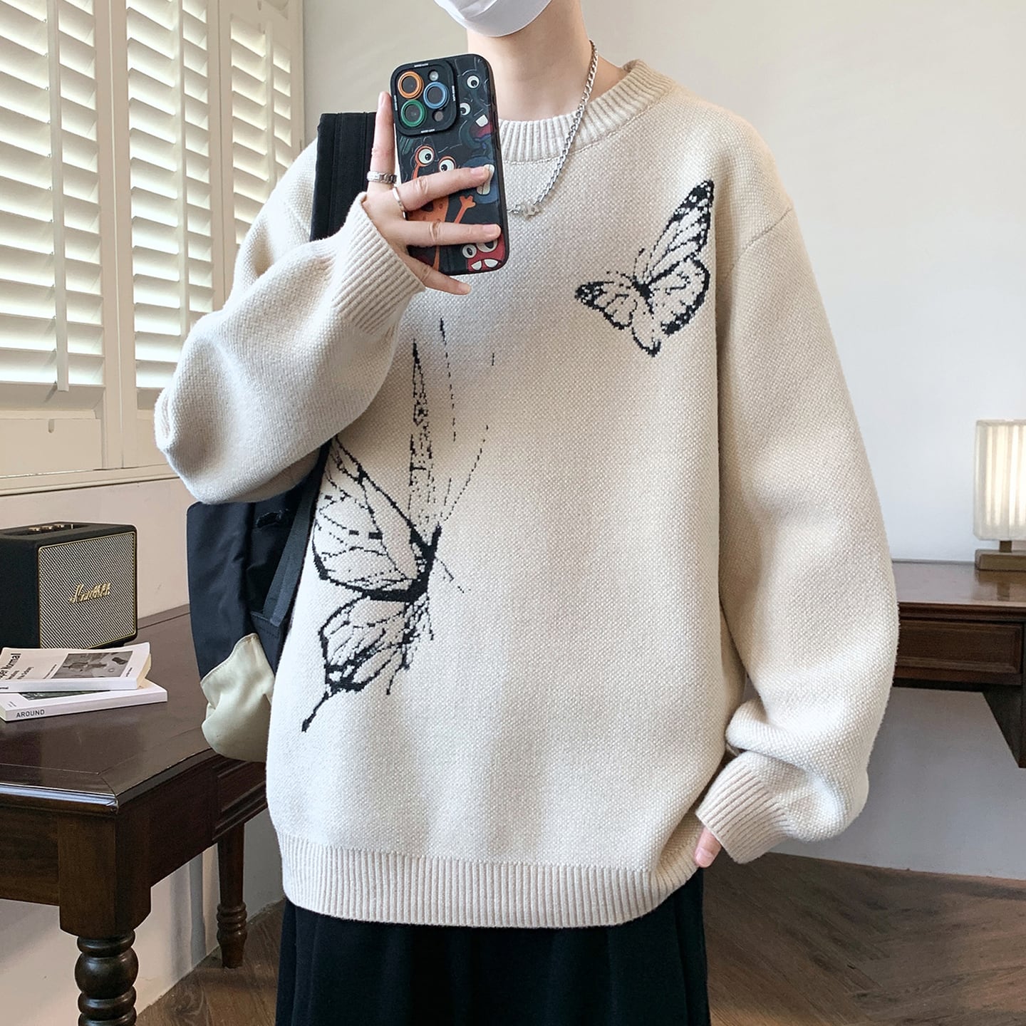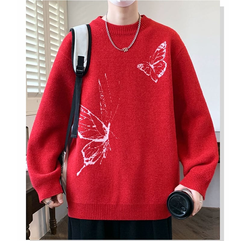 【WSシリーズ】★セーター★ 4color ニットトップス 男女兼用 メンズ 蝶々 赤 灰 白 カジュアル 大きいサイズ
