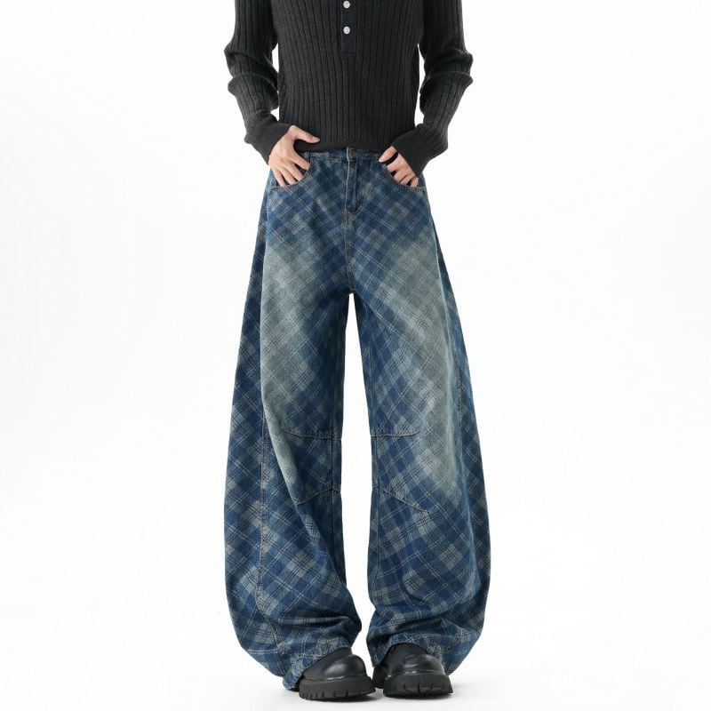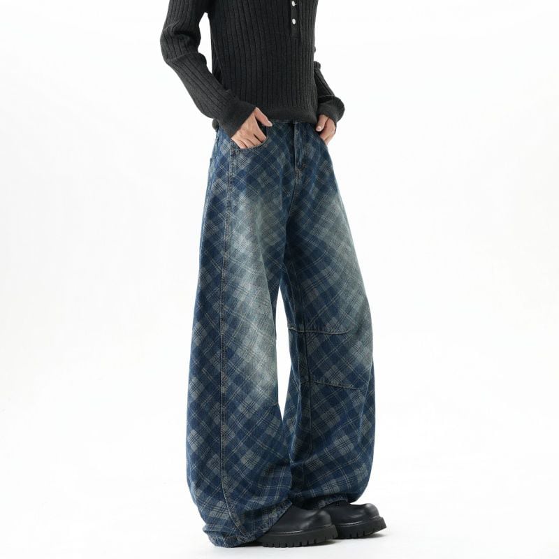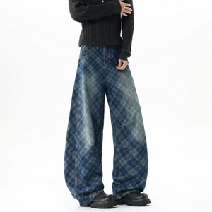 【Cearocowシリーズ】★カジュアルパンツ★ デニムパンツ ボトムス ズボン 男女兼用 メンズ チェック柄 ブルー 青い