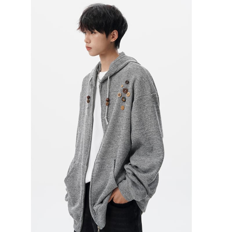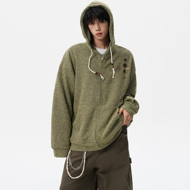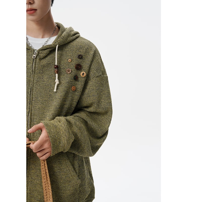 【GraceRubシリーズ】★アウター★ 2color ジャケット ニット 男女兼用 メンズ 大きいサイズ 帽子付き 緑 灰