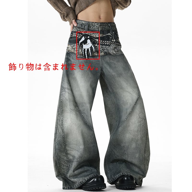 【Cearocowシリーズ】★カジュアルパンツ★ デニムパンツ ボトムス ズボン 男女兼用 メンズ デザイン性有り かっこいい プリント